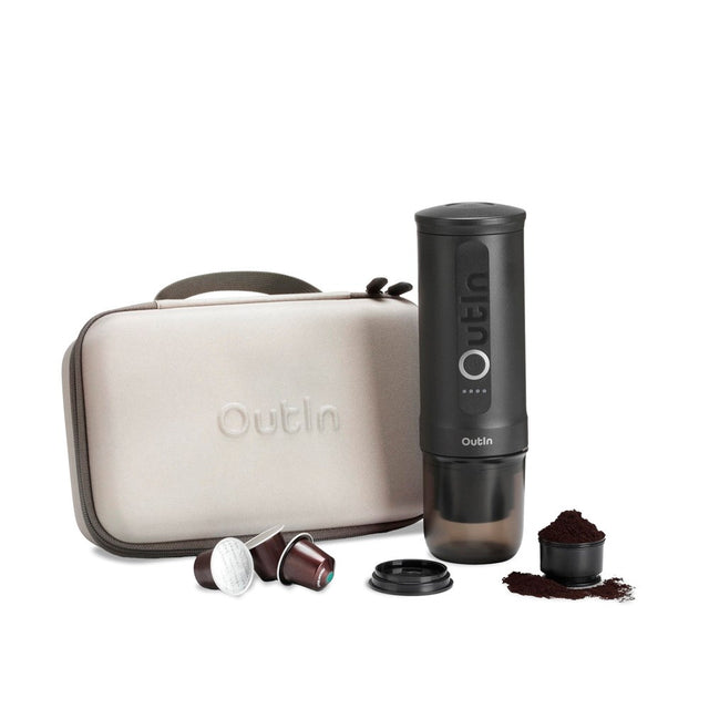 The set includes the innovative OutIn Nano espresso machine and a sleek, custom-designed protective case, making it easy and safe to take your coffee joy anywhere. The espresso machine combines high performance with a compact and elegant design, and it can be carried under your arm or in your backpack - perfect for enjoying coffee whether you're hiking, camping, at the beach, or just on the go.
