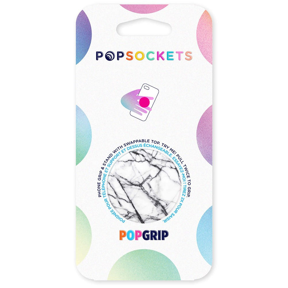 PopGrip Dove White Marble Removable Grip with Stand Function