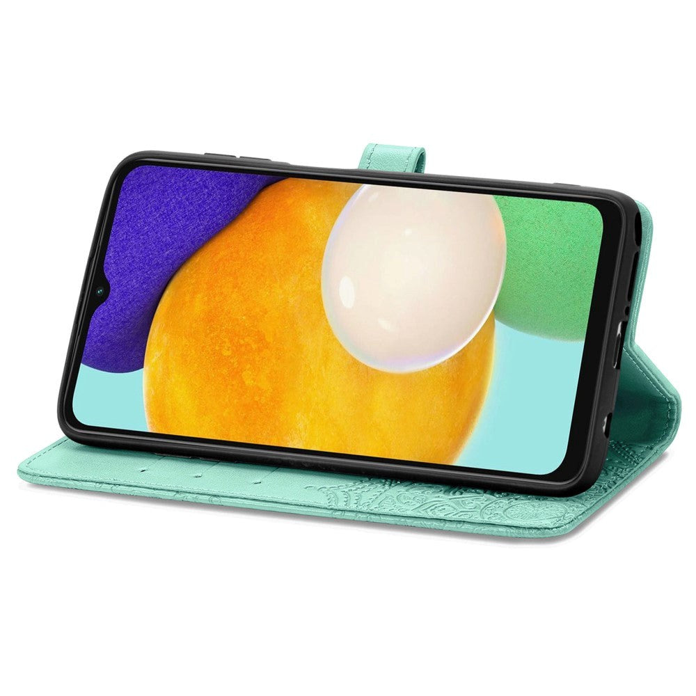 Samsung Galaxy A04s / A13 (5G) Leather Case w. Strap Mandala Pattern - Green