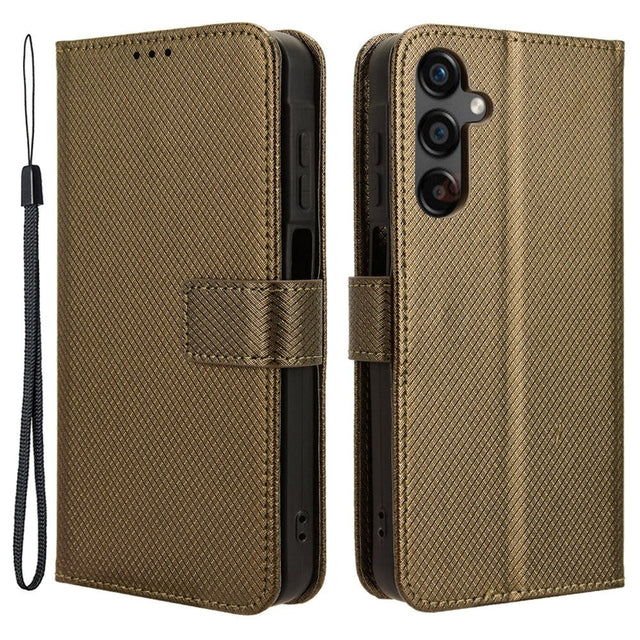 Samsung Galaxy A25 (5G) Leather Flip Case w. Strap & Texture - Brown