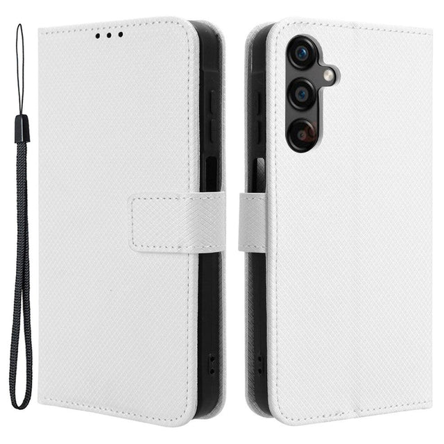 Samsung Galaxy A25 (5G) Leather Flip Case w. Strap & Texture - White