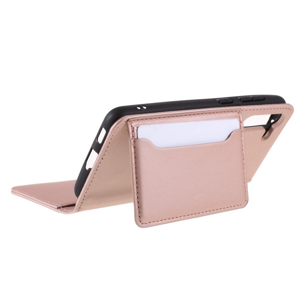 On the back of this Samsung Galaxy S21 FE (5G) case you will find a multifunction magnetic card holder. In addition to holding one card, it folds out easily and can be used as a kickstand while streaming movies or series.