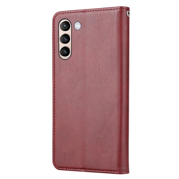 Samsung Galaxy S23 Glossy Leather Flip Case w. 3 Card Holders and Front Pocket - Wine Red
