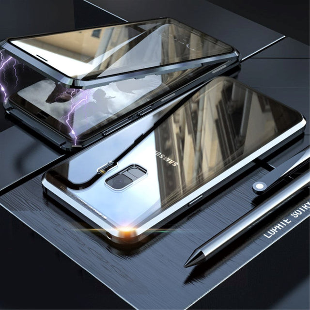 A separable and super strong Samsung Galaxy S9 case, which is made in a combination of metal, tempered glass and magnet, casing the entire phone. With this combination, you get a highly durable case that gives your phone good protection on the back, edges, corners and screen.