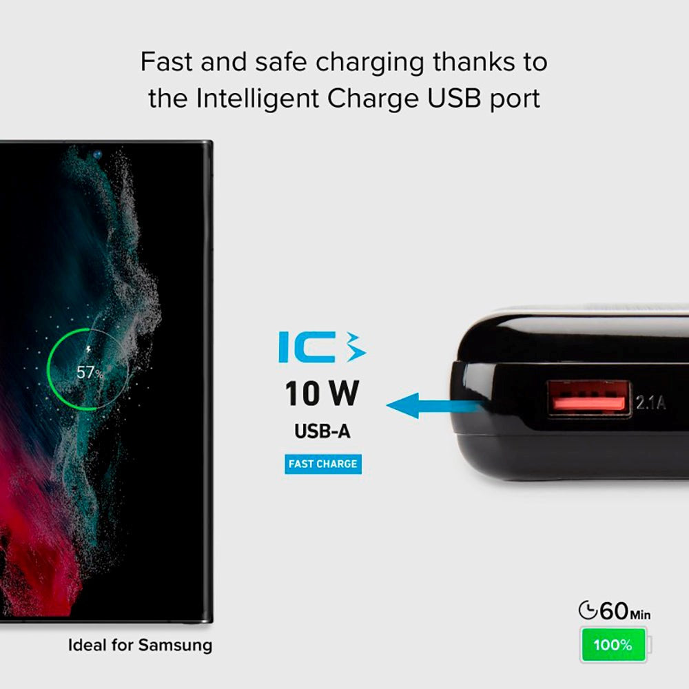 This Powerbank 20W 10,000 mAh from SBS is a perfect blend of style and performance. With both a USB-C and USB-A Output, it is possible to charge 2 devices at the same time with this Powerbank. The USB-C output is equipped with Power Delivery, which can deliver up to 20W power. The USB-A output can deliver up to 10W and has Intelligent Charge.