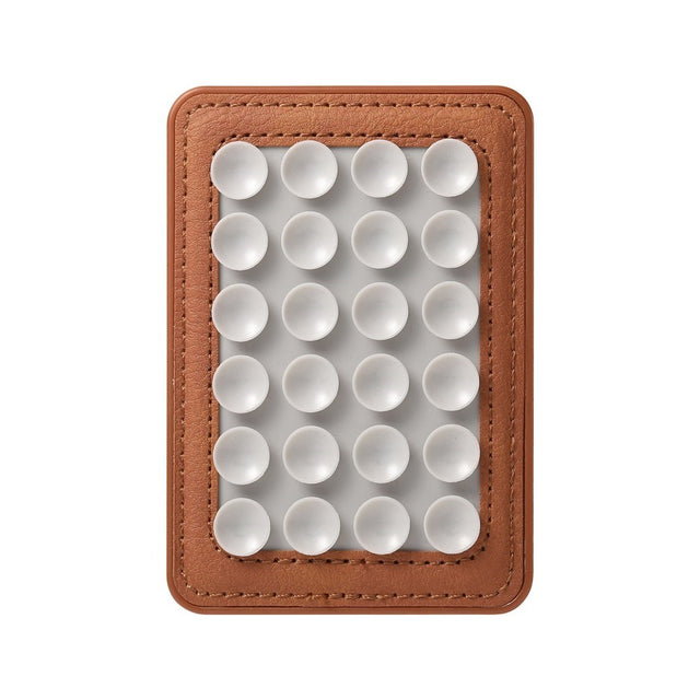 Silicone Suction Cup Mobile Holder with Faux Leather - MagSafe Compatible - Brown / White
