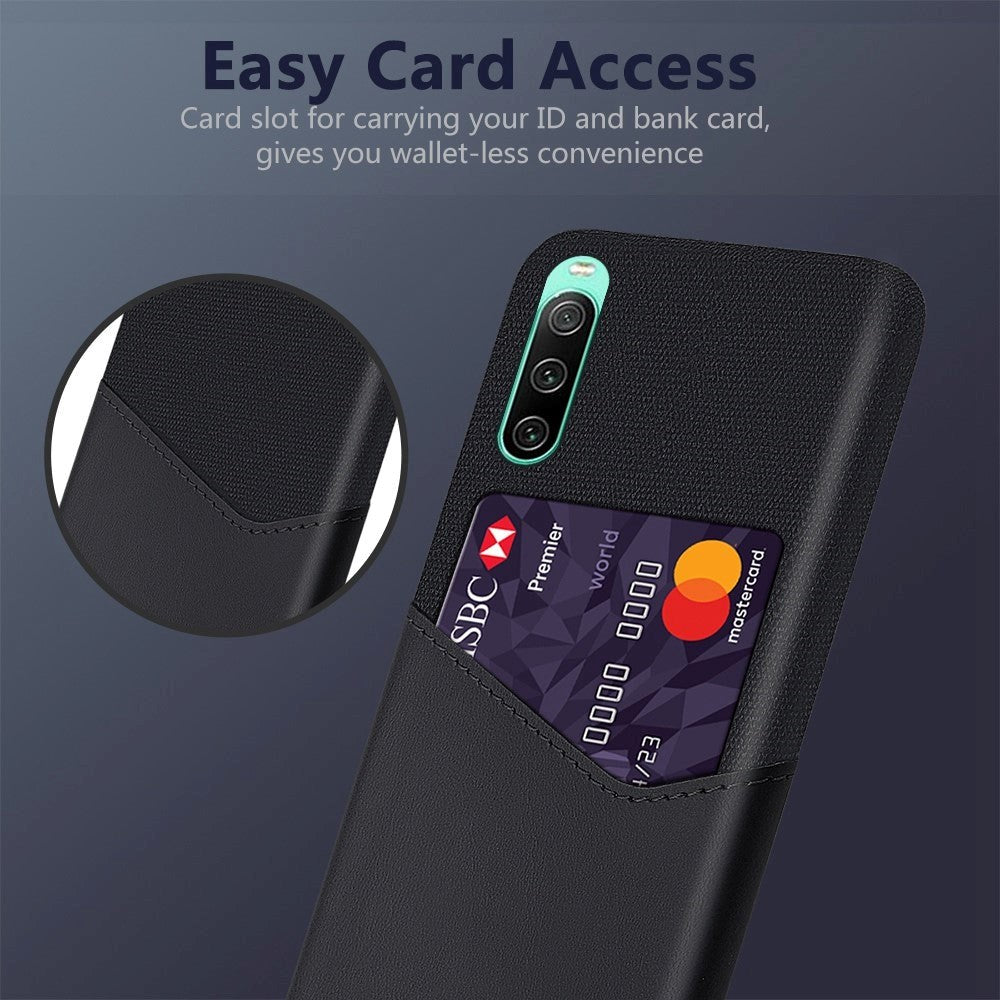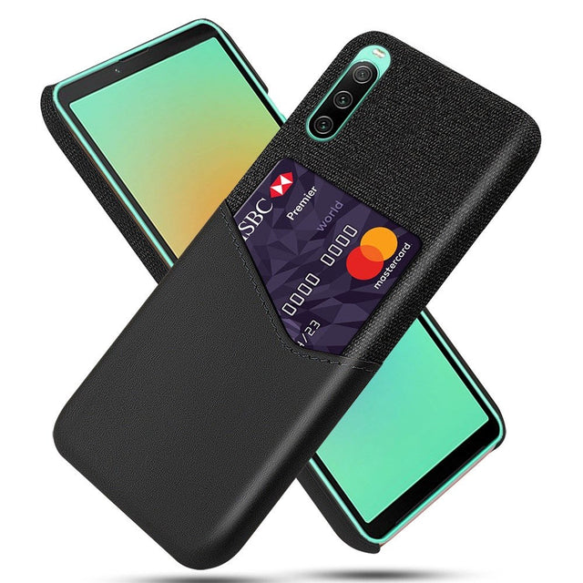 Sony Xperia 10 IV Fabric Covered Plastic Case with Leather Card Holder - Black