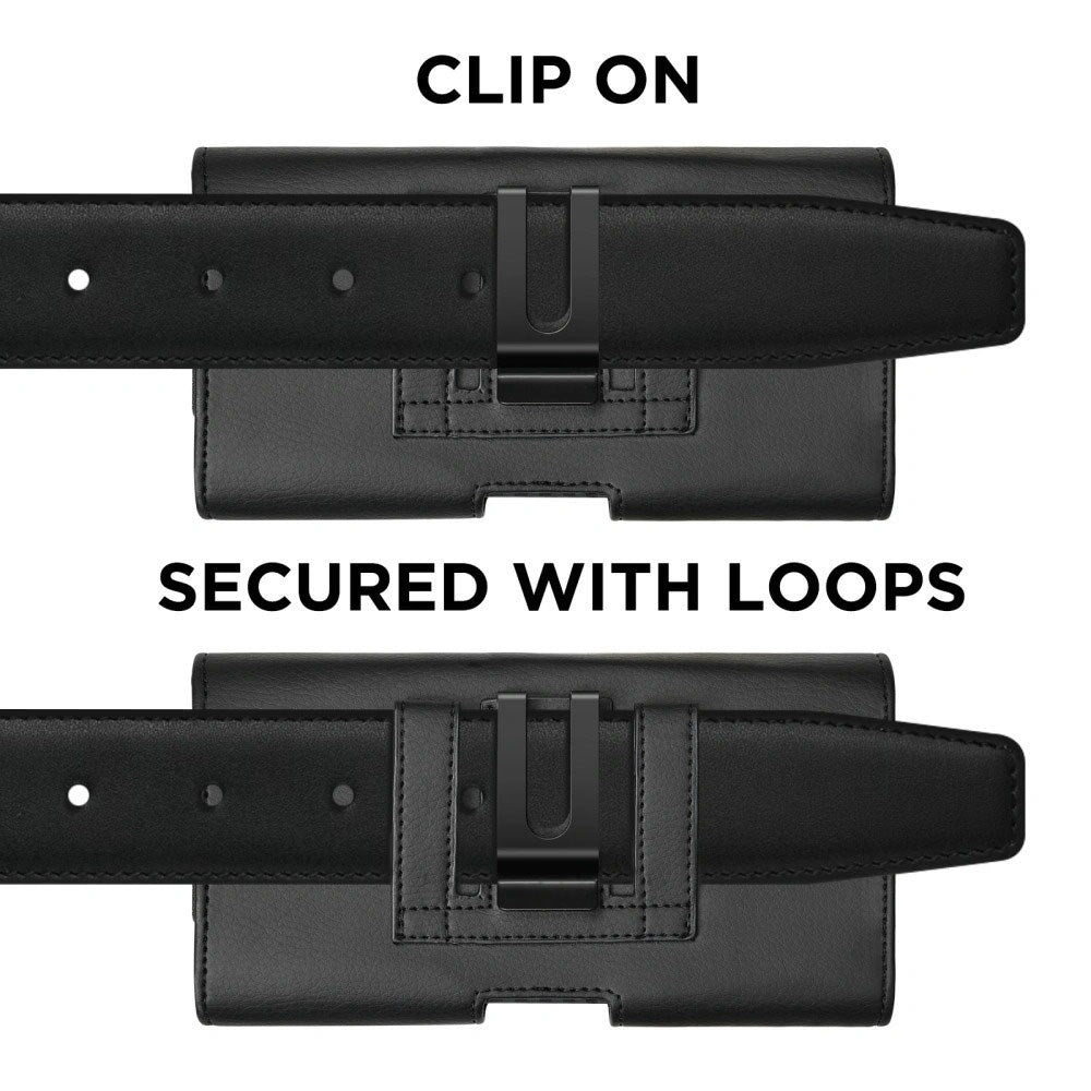 For extra functionality, this Universal Faux Leather Phone Pouch has built-in slots for credit cards, ID, or small items, so you can carry your essentials without needing a wallet. It comes with a durable belt clip and two extra belt loops, ensuring a stable and secure fit – whether you’re at work, on the go, or taking a walk.