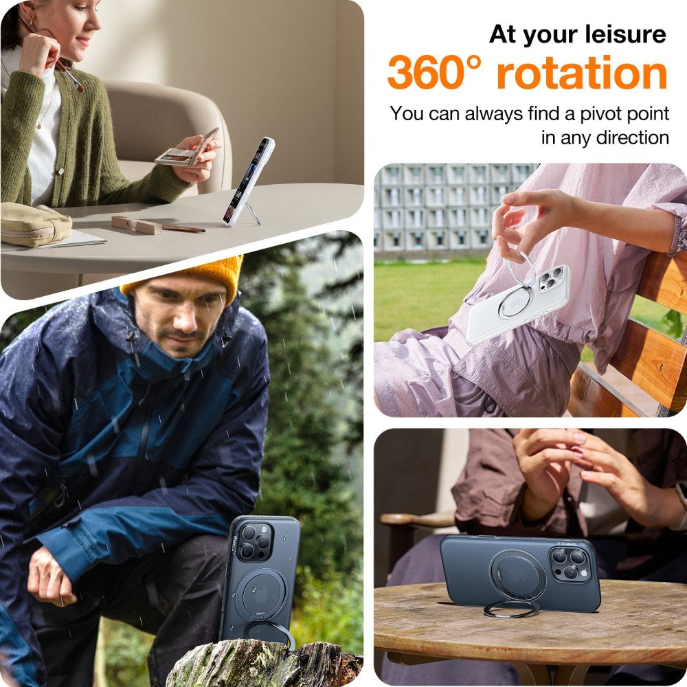 The case features a built-in magnetic ring, making it fully MagSafe compatible for easy and secure attachment to wireless chargers, magnetic accessories, and other gear - without any hassle. The magnetic ring also doubles as a 360° kickstand, allowing for hands-free viewing at any angle you prefer. It's stable, durable, and easy to adjust just the way you want.