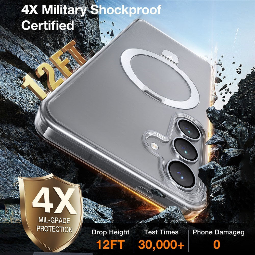 The practical foldable kickstand adjusts up to 120 degrees, offering flexible vertical and horizontal viewing – designed to withstand over 30.000 folds for long-lasting durability. Built-in strong magnets ensure seamless MagSafe compatibility, allowing fast and safe wireless charging without compromising functionality.