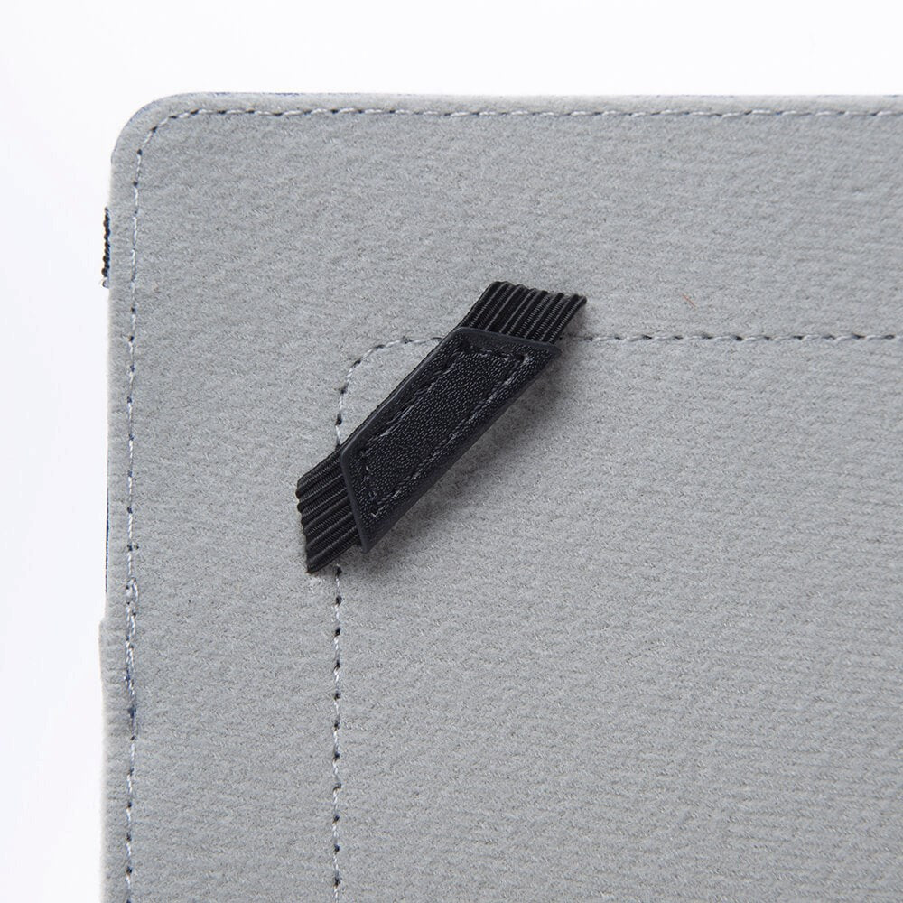 NOTE: Your tablet is held in place by the four elastic arms of the case, which can be stretched. They are at each their corner and may be able to press the buttons of your tablet if they sit very close to the corner.