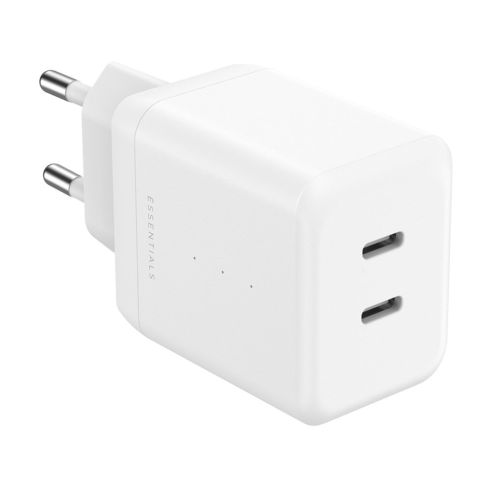 ËESSENTIALS PD 35W GaN Recycled Plastic Wall Charger with 2 x USB-C - White
